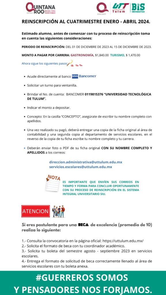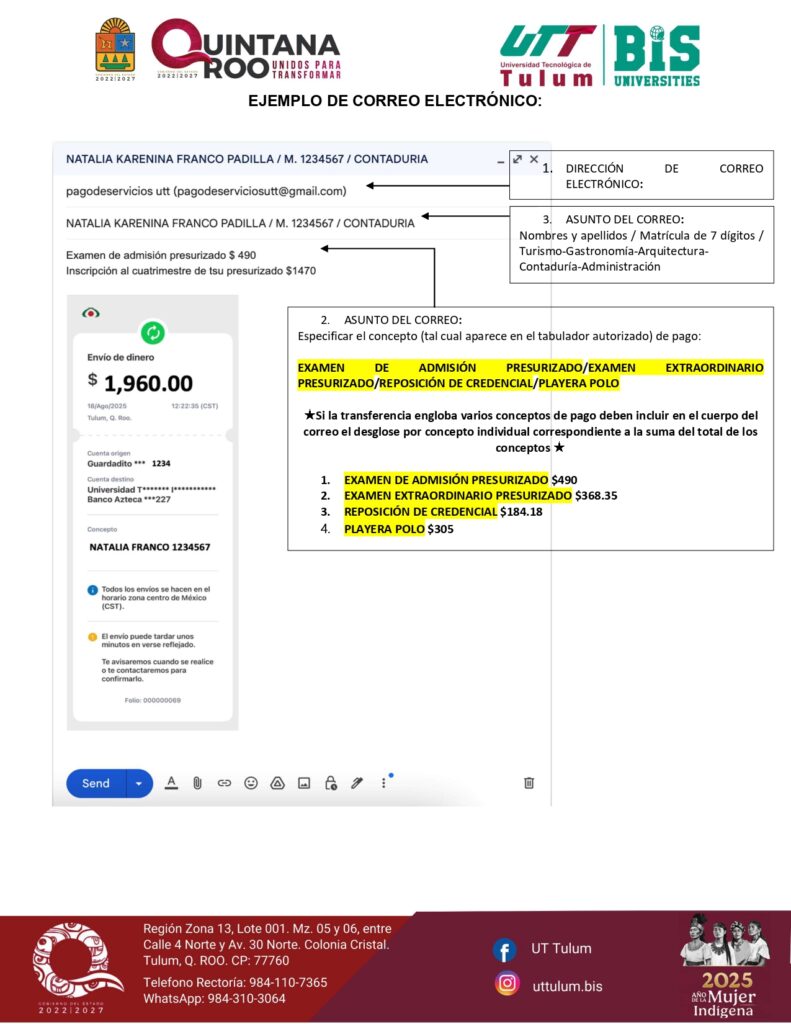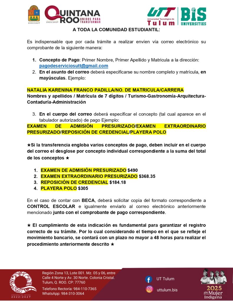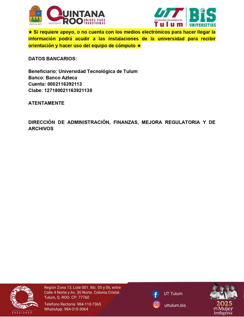 Enviar digitalizado al correo: nuevo.ingreso@utrivieramaya.edu.mx